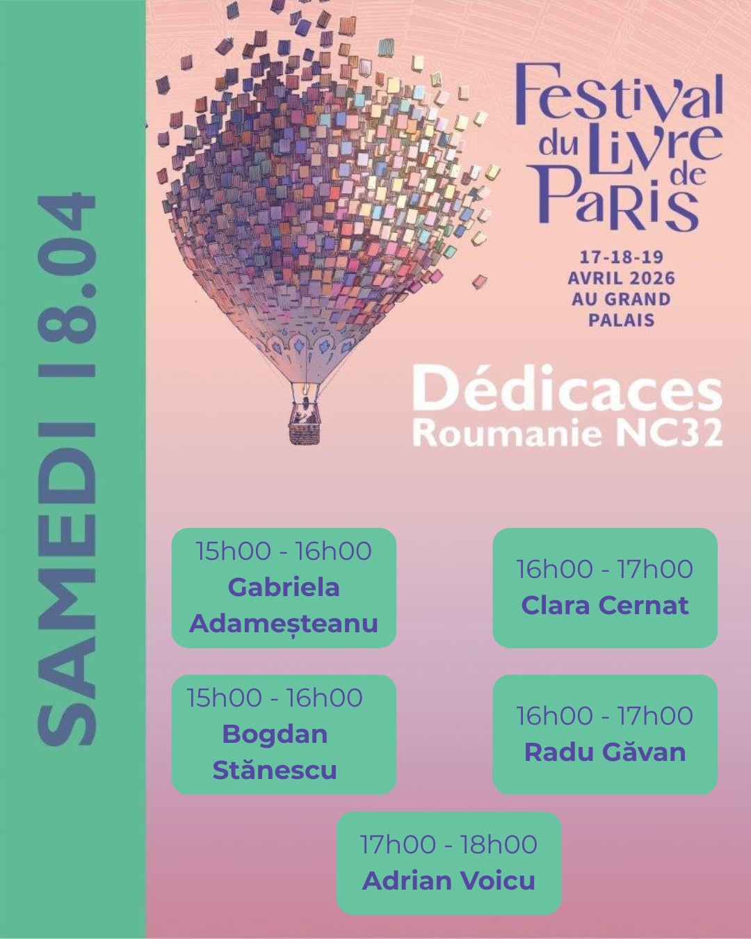 Prin urmare, sâmbăta viitoare, între orele 17:00 și 18:00, vă aștept la Grand Palais, la standul NC32 al Institutului Cultural Român din Paris nu cu una, nu cu doua, ci cu trei cărticele frumușele.